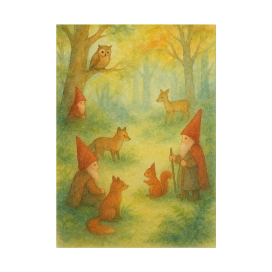 Woodland Gnomes and Friends Watercolor Poster
