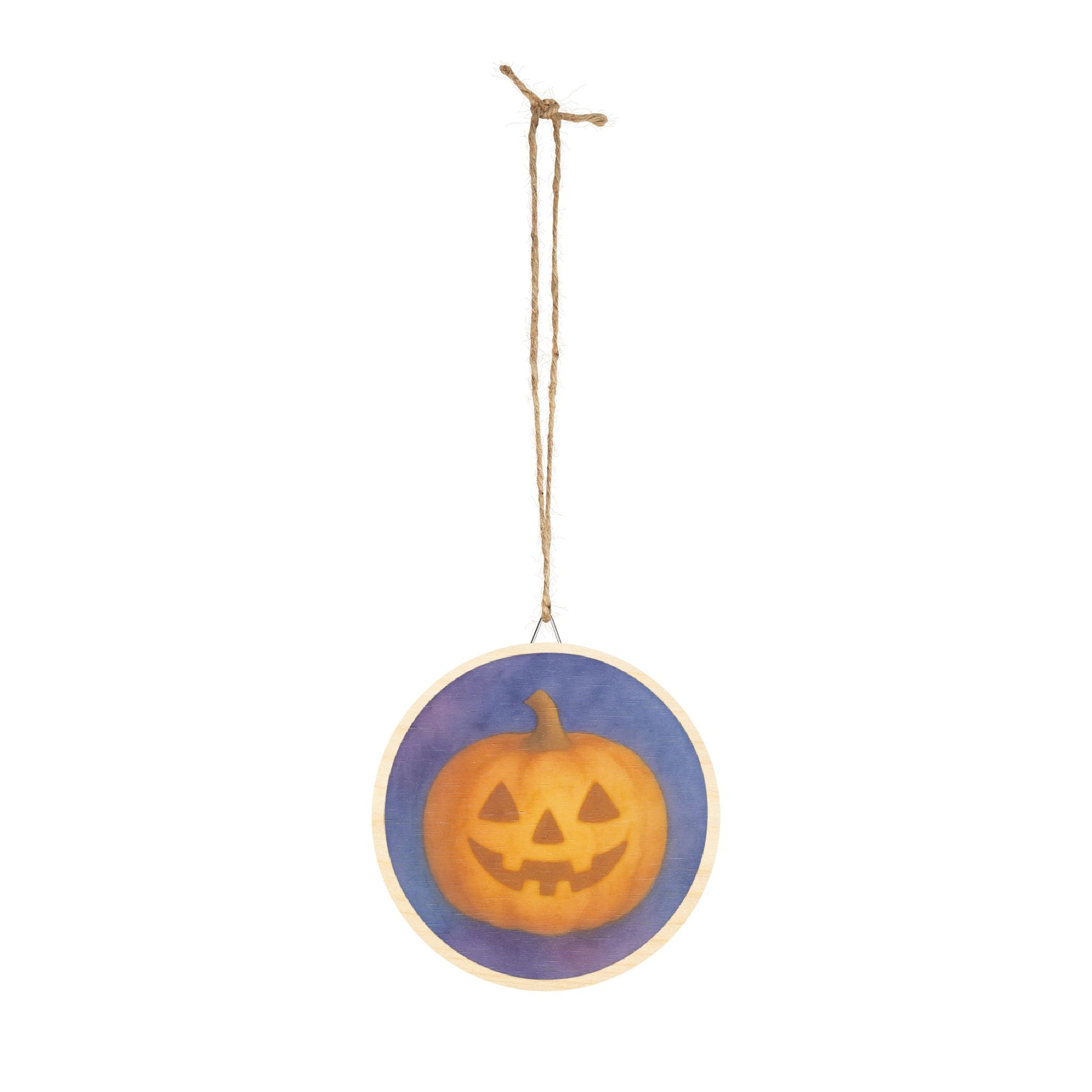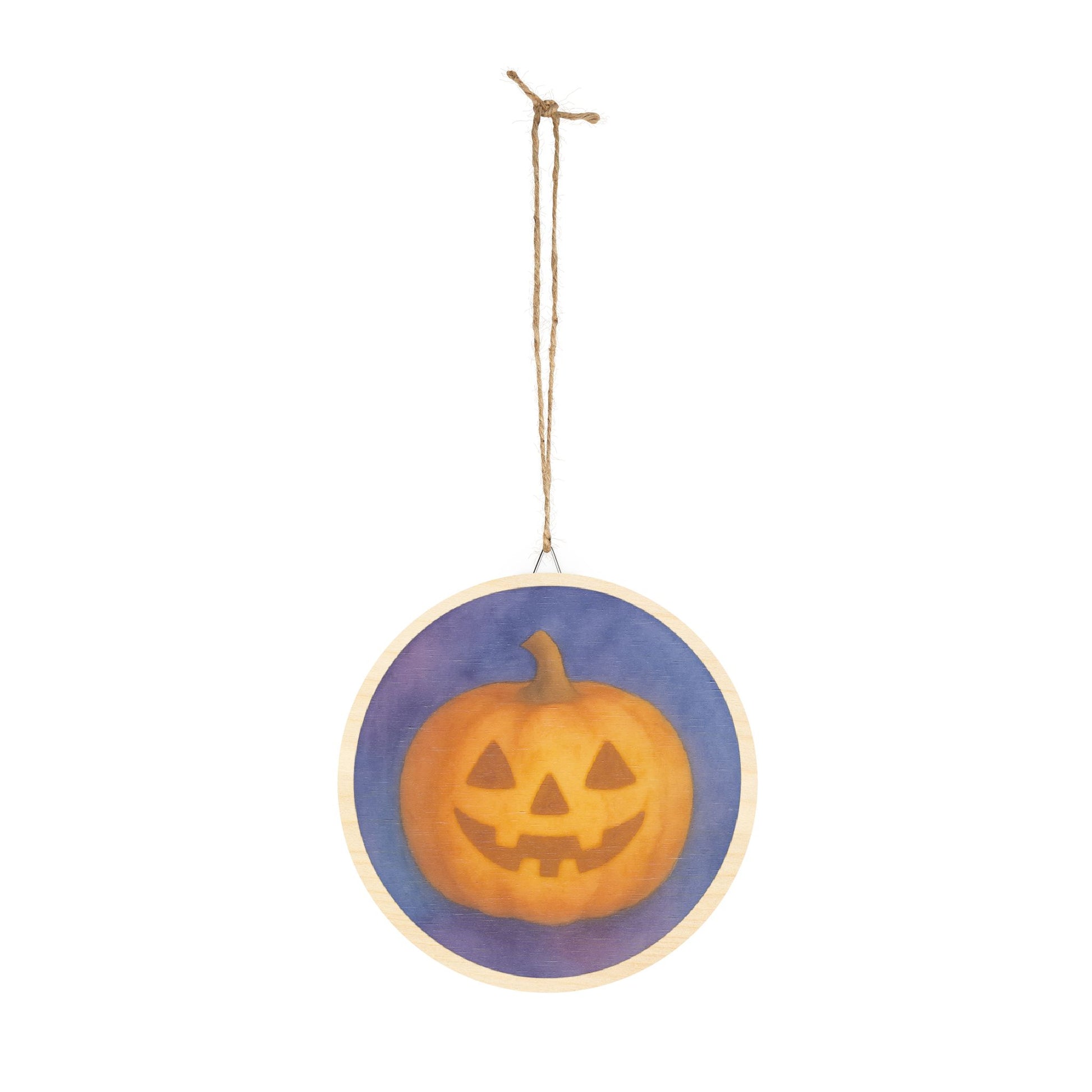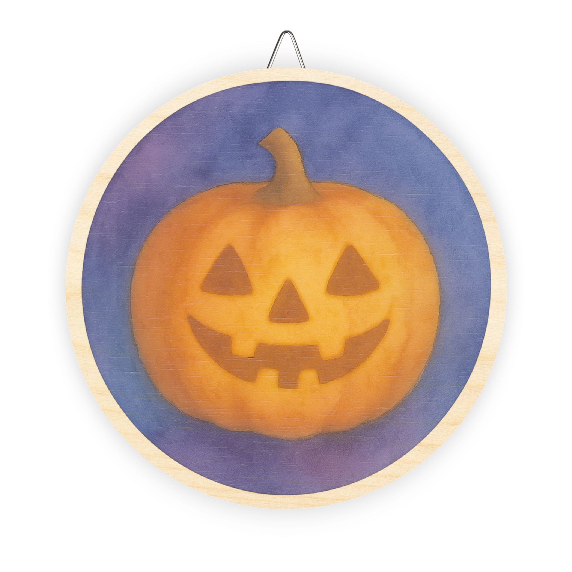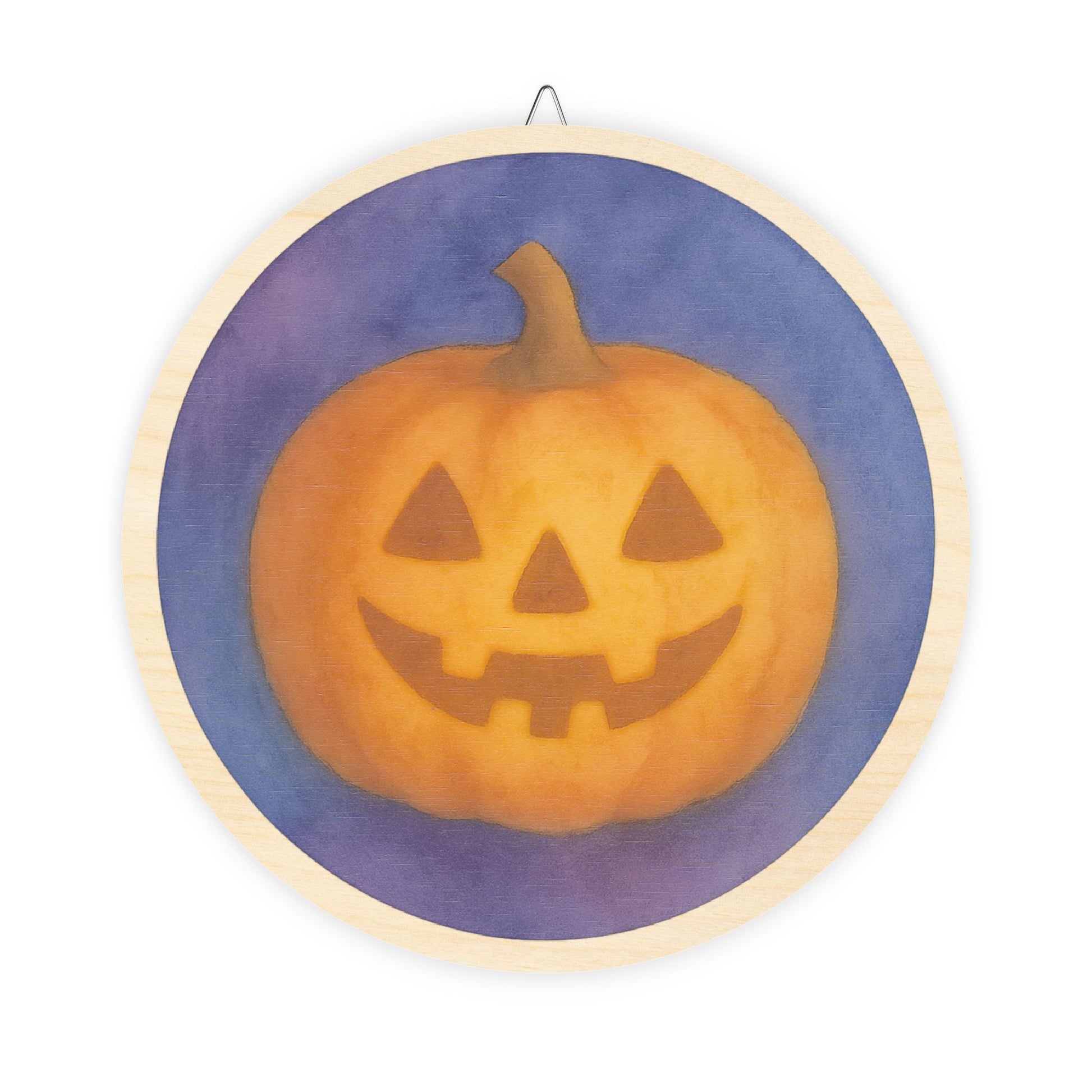 Watercolor Jack-o’-Lantern Round Wood Sign