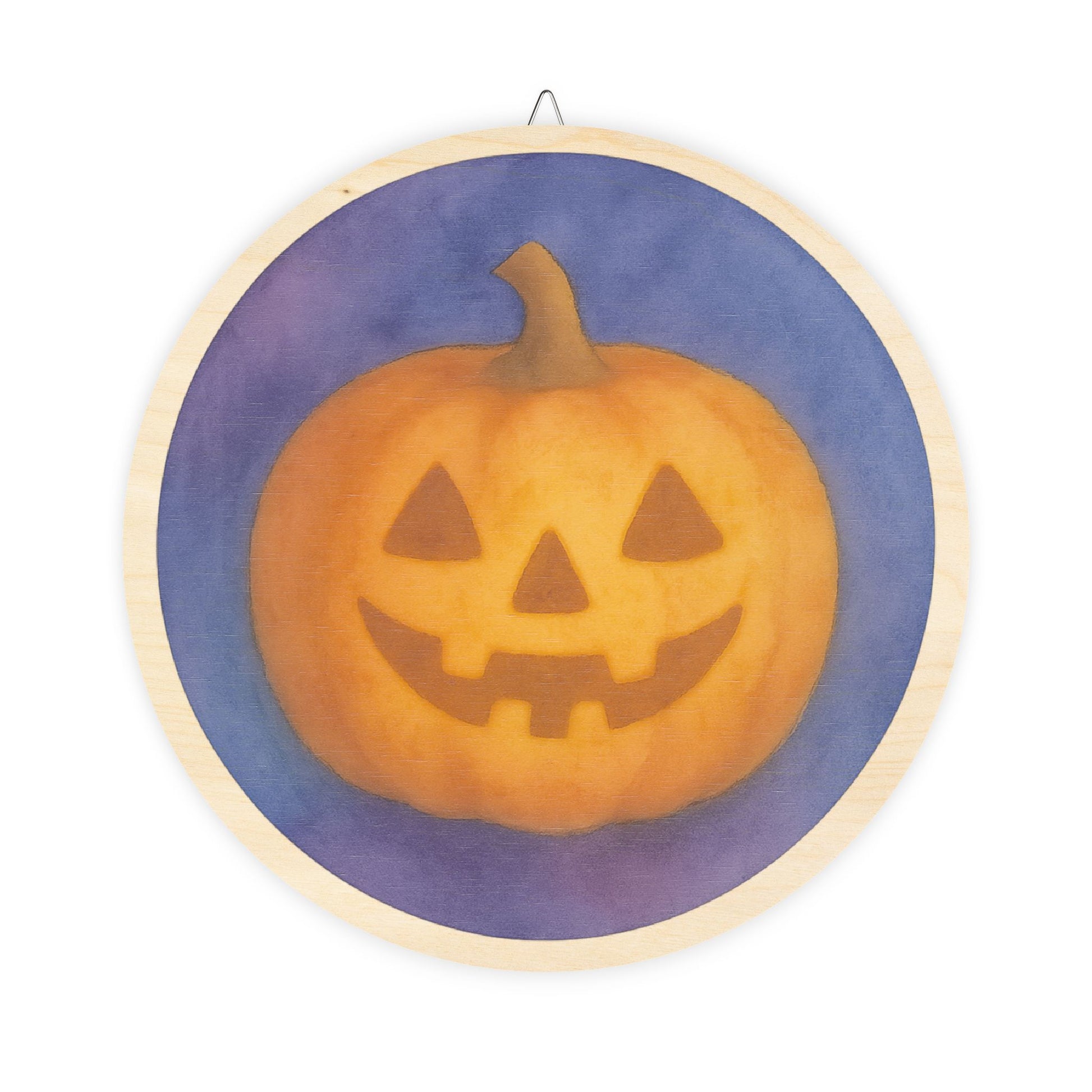 Watercolor Jack-o’-Lantern Round Wood Sign – Waldorf Classroom Halloween Decor, Homeschool Autumn Decorations